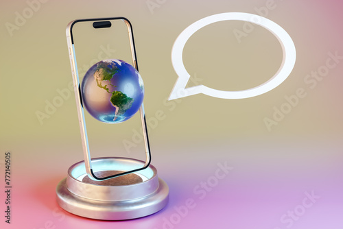 Wall mural : A cell phone is on a stand with a globe on top of it - 3d render