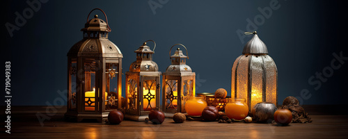 Wall mural : A charming display of lanterns and candles with fall foliage