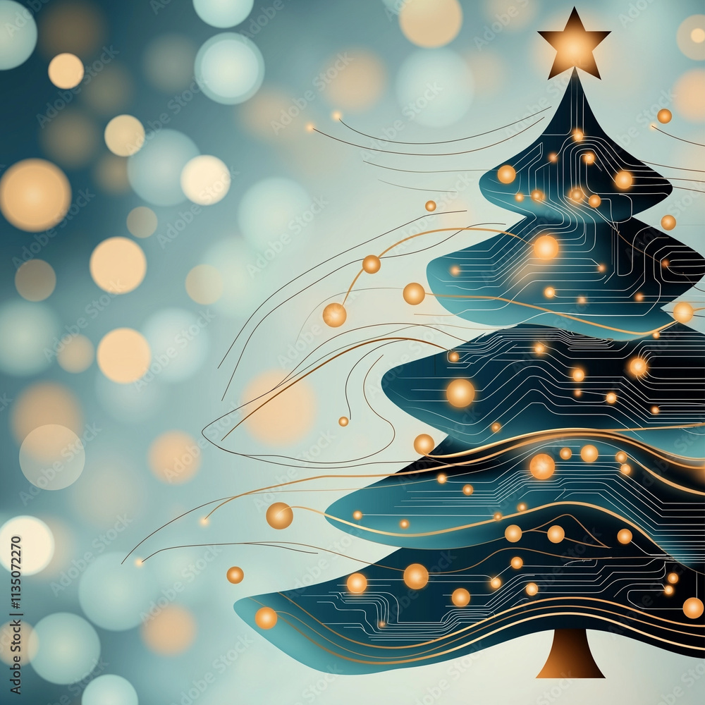 Wall mural a christmas tree and light design with technical elements such as circuits. - Wall murals Wall mural a christmas tree and light design with technical elements such as circuits. - Wall murals