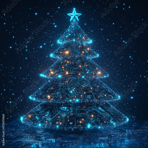 The watermark will not be included on Wall mural.: A christmas tree and light design with technical elements such as circuits -