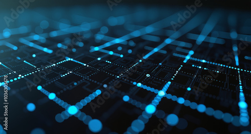 Wall mural a circuit board with blue dots, connected in a network-like pattern, symbolizing digital connectivit - Wall murals Wall mural a circuit board with blue dots, connected in a network-like pattern, symbolizing digital connectivit - Wall murals