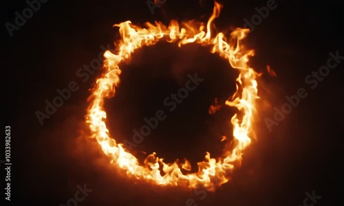 The watermark will not be included on Wall mural.: A circular formation of flames creating a striking visual effect against a dark background -