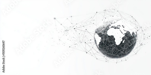 The watermark will not be included on Wall mural.: A clean and minimalistic illustration of a digital globe with glowing network lines on a white backg