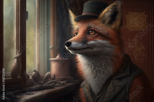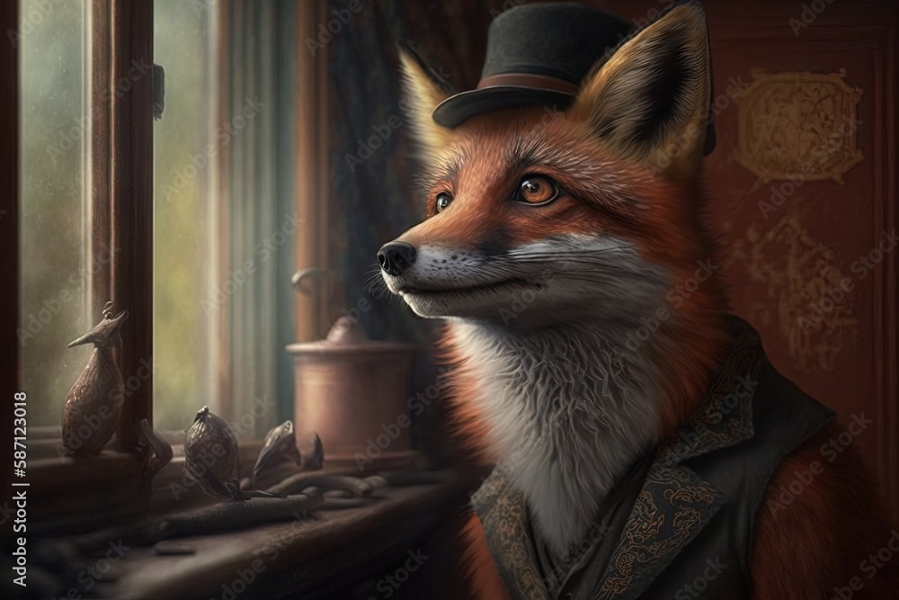 A clever little fox from days gone by generative aiWall mural