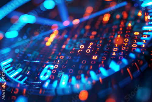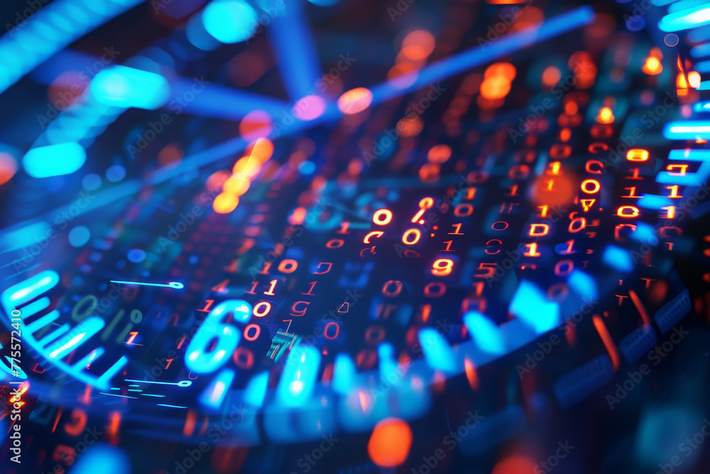 Wall mural : A close up of a clock with a blue background and a bunch of numbers on it