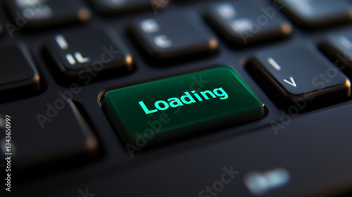 The watermark will not be included on Wall mural.: A close-up of a computer keyboard highlighting a green 'loading' key, representing digital processes