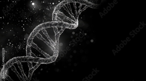Wall mural a close up of a dna strand with a black background. the image is abstract and has a moody atmosphere - Wall murals Wall mural a close up of a dna strand with a black background. the image is abstract and has a moody atmosphere - Wall murals