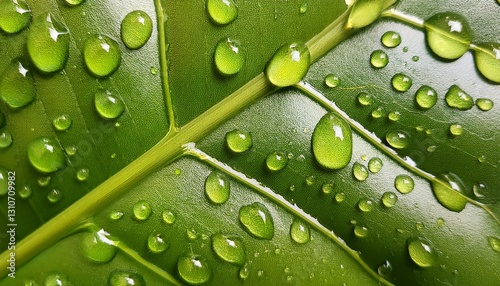 Wall mural : A close up of a fresh green leaf with water droplets on it highlighting its vibrant texture this ima