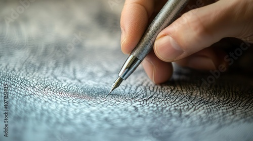 Wall mural : A close-up of a hand creating repetitive patterns on paper with a fine-tip pen