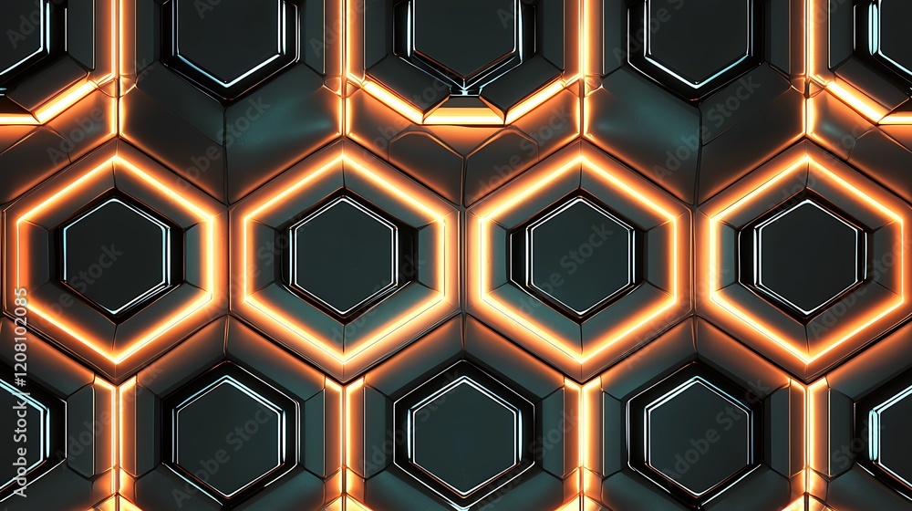 The watermark will not be included on Wall mural.: A close up of a hexagonal pattern with neon lights