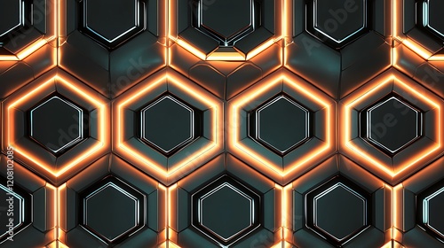 Wall mural : A close up of a hexagonal pattern with neon lights
