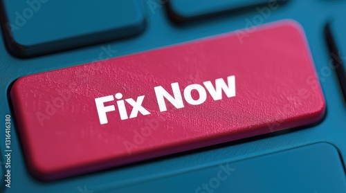Wall mural : A close-up of a keyboard with a prominent pink "fix now" button, emphasizing urgency or the need for