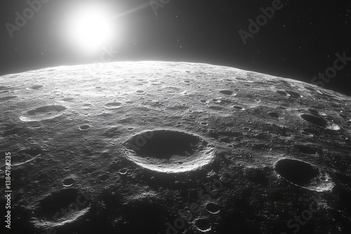 Wall mural a close up of a moon with many craters on it. moon's surface with craters, isolated on a solid backg - Wall murals Wall mural a close up of a moon with many craters on it. moon's surface with craters, isolated on a solid backg - Wall murals