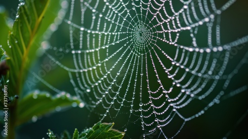 Wall mural a close up of a on a tree branch with dew drops on the drops of the.