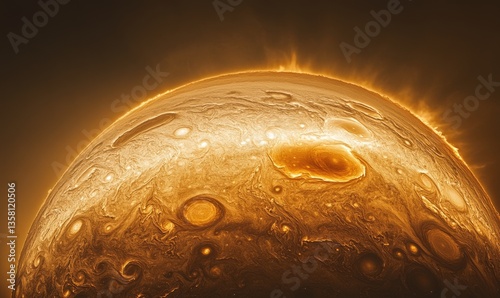 The watermark will not be included on Wall mural.: A close up of a planet with a sun in the background