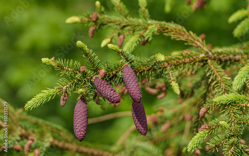 A close up of a shortstraw pine cone on a tree branchWall mural