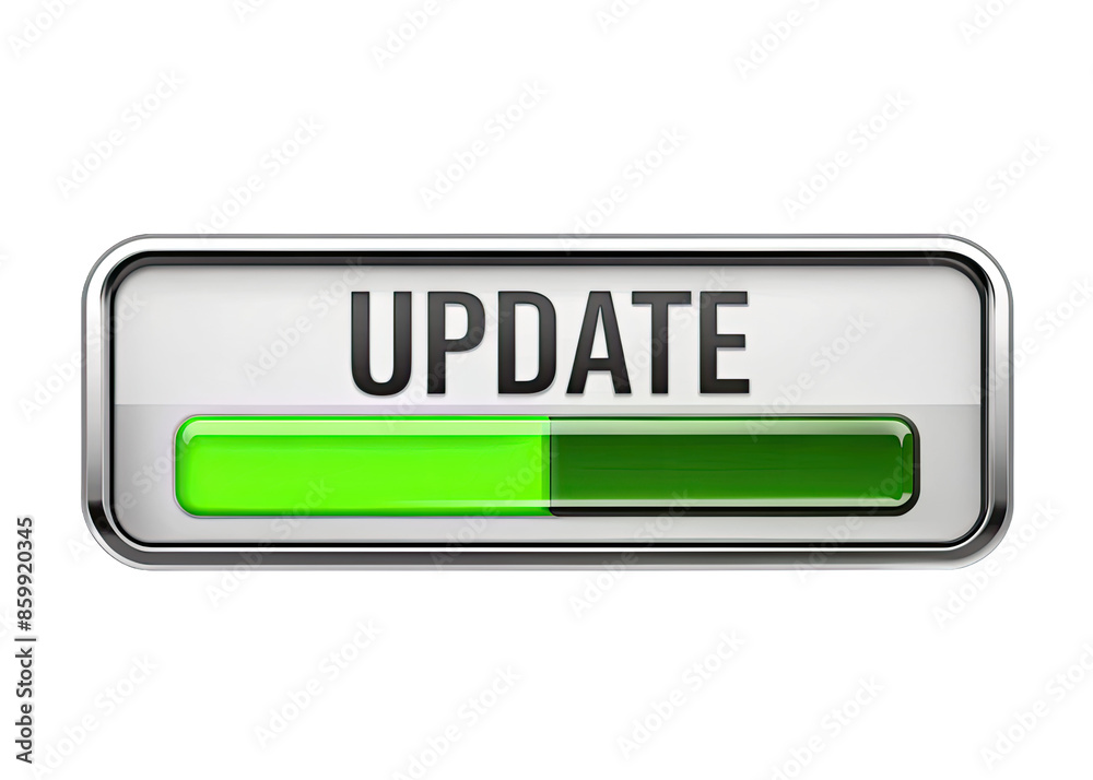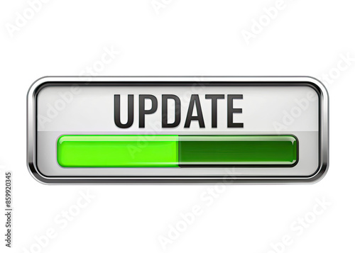 The watermark will not be included on Wall mural.: A close-up of a silver button with the word update in black text and a green progress bar, isolated