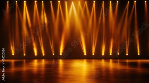 Wall mural a close up of a stage with many golden spotlights illuminating the area in front. there are many ref - Wall murals Wall mural a close up of a stage with many golden spotlights illuminating the area in front. there are many ref - Wall murals