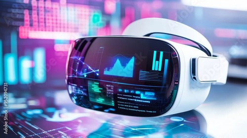 Wall mural a close-up of a virtual reality (vr) headset being used in a business setting for virtual meetings o