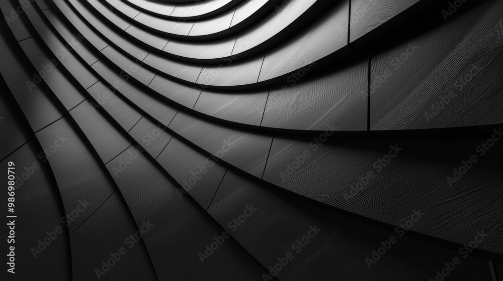 The watermark will not be included on Wall mural.: A close-up of abstract black curved panels with a textured surface, creating a modern and geometric