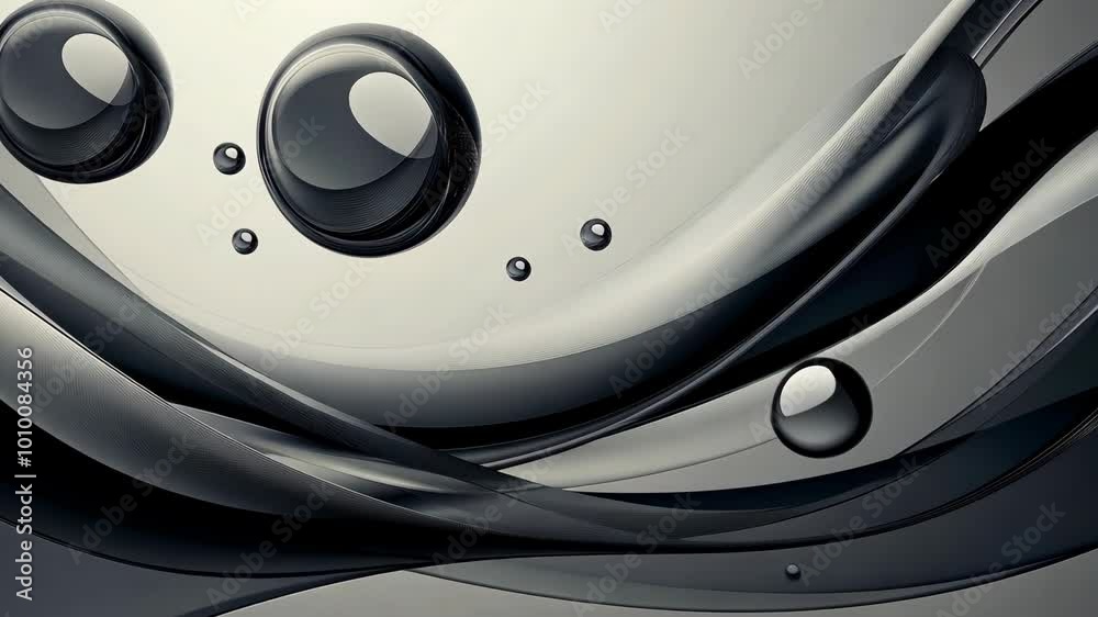 The watermark will not be included on Wall mural.: A close-up of black and white spheres floating on a swirling, abstract background