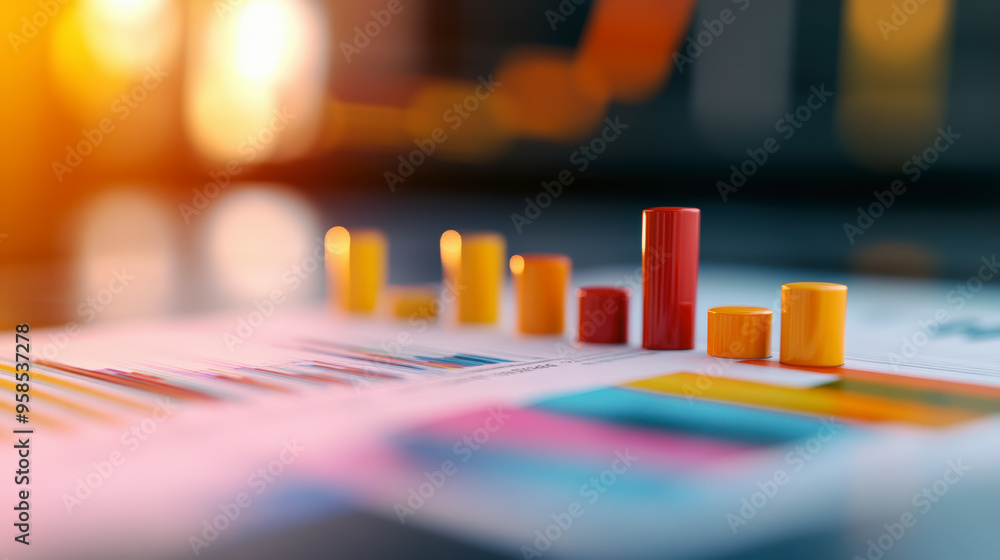 Wall mural a close-up of colorful bar graphs displayed on charts, symbolizing data analysis and financial trend - Wall murals Wall mural a close-up of colorful bar graphs displayed on charts, symbolizing data analysis and financial trend - Wall murals