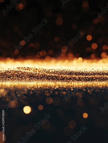 The watermark will not be included on Wall mural.: A close-up of glowing lights on the bottom edge against a dark background, creating an abstract boke