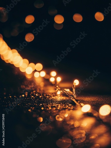The watermark will not be included on Wall mural.: A close-up of glowing lights on the bottom edge against a dark background, creating an abstract boke
