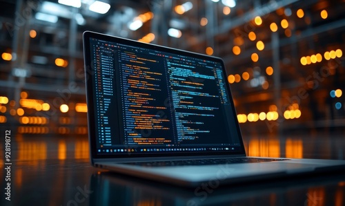 Wall mural a close-up on a laptop screen displaying code with cloud service apis and a blurred background of a  - Wall murals Wall mural a close-up on a laptop screen displaying code with cloud service apis and a blurred background of a - Wall murals