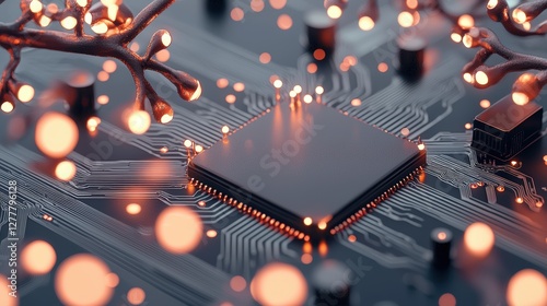 Wall mural a close up shot of a computer chip with glowing circuits, representing the hardware powering machine