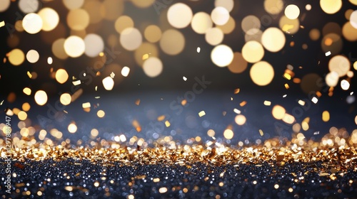 Wall mural : A close up shot of golden bokeh lights with a slight swirl effect, adding a dynamic and whimsical fe