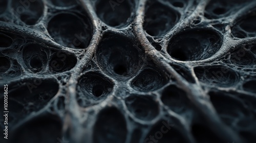 The watermark will not be included on Wall mural.: A close-up view of a complex, dark biological or synthetic texture, featuring an intricate pattern o