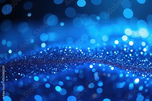 Wall mural : A close-up view of a shimmering blue abstract background filled with captivating bokeh effects, crea