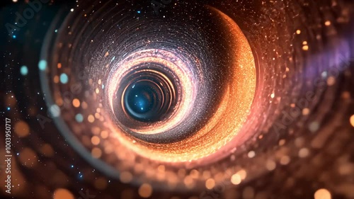 Wall mural a close-up view of a spiraling tunnel of light with shimmering particles and a blue glow at its cent