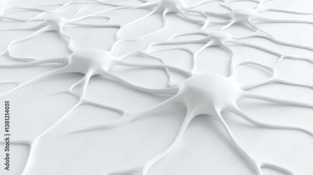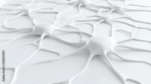 The watermark will not be included on Wall mural.: A close-up view of abstract, white, neuron-like structures with branching extensions is presented ag