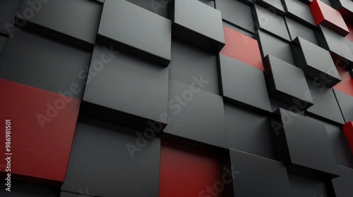 The watermark will not be included on Wall mural.: A close-up view of an abstract geometric pattern made of black and red cubes, arranged in a repeatin