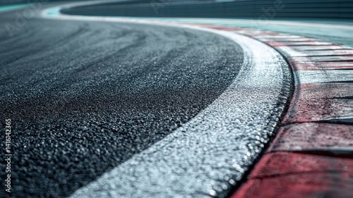 The watermark will not be included on Wall mural.: A close-up view of an empty race track curvature, showcasing the smooth asphalt surface and distinct
