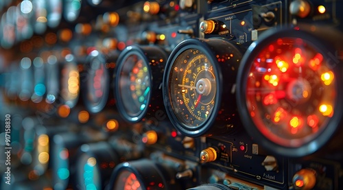 Wall mural : A close-up view of various colorful clocks displaying different times -