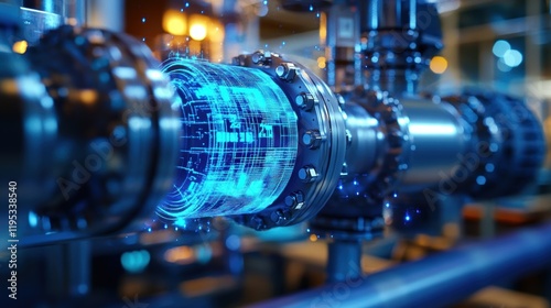 Wall mural a closeup of a valve assembly with fluid flow sensors attached showing a digital output that tracks  - Wall murals Wall mural a closeup of a valve assembly with fluid flow sensors attached showing a digital output that tracks - Wall murals