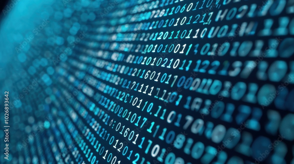 Wall mural a closeup of code highlights data security, showcasing software development through intricate digita - Wall murals Wall mural a closeup of code highlights data security, showcasing software development through intricate digita - Wall murals