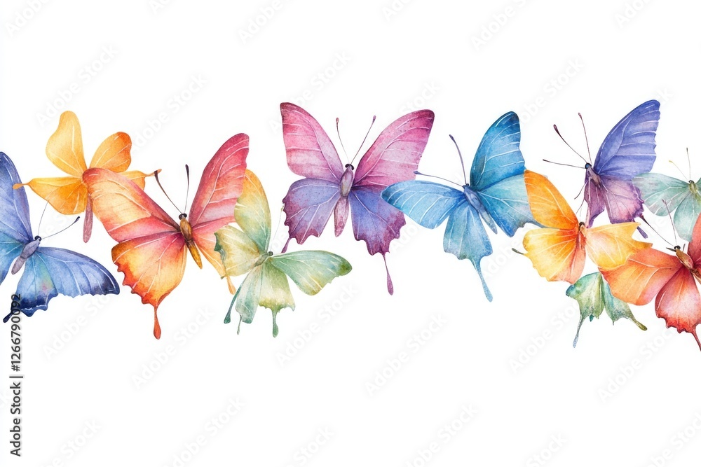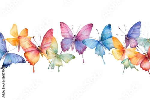 The watermark will not be included on Wall mural.: A cluster of colorful butterflies perched on a white background, perfect for adding a pop of color t