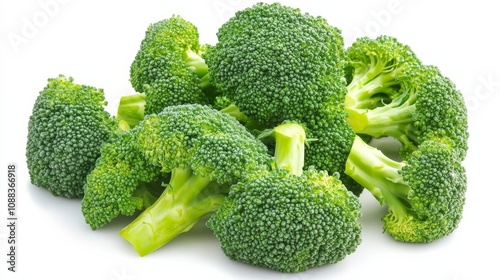 The watermark will not be included on Wall mural.: A cluster of fresh, green broccoli florets with their tree-like shapes and bumpy textures, each broc