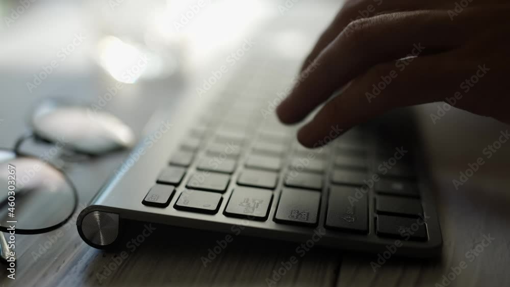 A coder hands are typing on pc keyboard - businessman is working in office - programmer is writing codWall mural