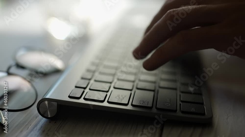 Wall mural a coder hands are typing on pc keyboard. businessman is working in office. programmer is writing cod