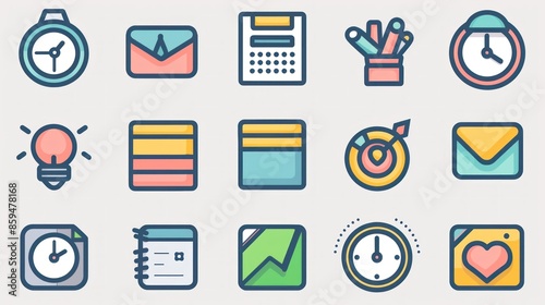 The watermark will not be included on Wall mural.: A collection of 2d icons for productivity apps and websites - the set includes symbols for tasks, cal