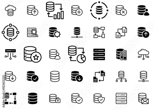 Wall mural a collection of database icons silhouette vector logo design containing storage,database,data,server - Wall murals Wall mural a collection of database icons silhouette vector logo design containing storage,database,data,server - Wall murals