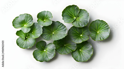 Wall mural : A collection of green leaves arranged in a semi-circular shape, isolated on a white background -