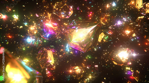 A collection of shiny decorative objects arranged with vibrant tulips on a textured surfaceWall mural