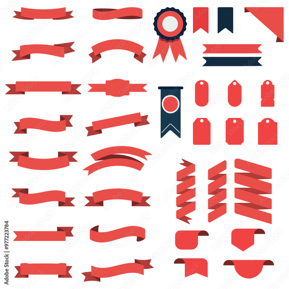The watermark will not be included on Wall mural.: A collection of various banners with red ribbons
