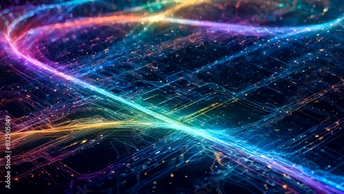 Wall mural a colorful, abstract image of a cityscape with a rainbow-colored line running through it. concept of - Wall murals Wall mural a colorful, abstract image of a cityscape with a rainbow-colored line running through it. concept of - Wall murals